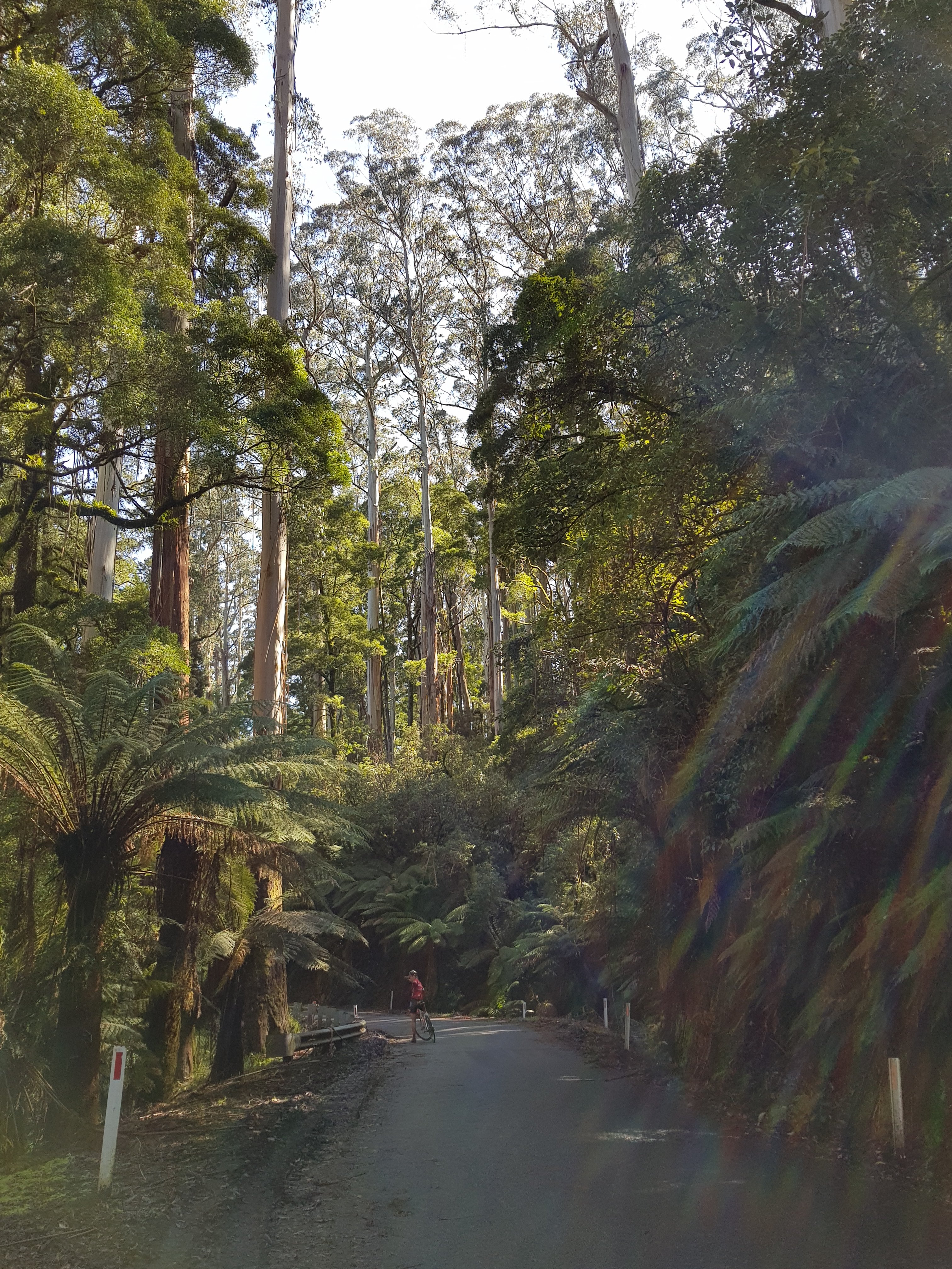 We had done 27km at this point and had 17km more to go before the next rest stop. Thankfully that was the last of the proper hard climbing. The next 17km were undulating and through absolutely stunning scenery in the Great Otway National Park, and we had company and conversation to distract ourselves from how tired we were!