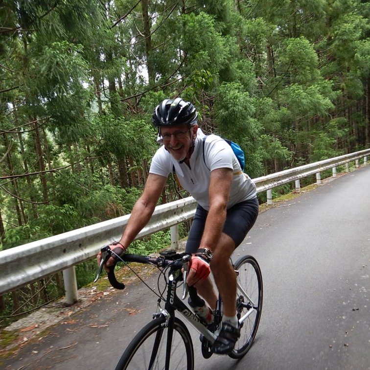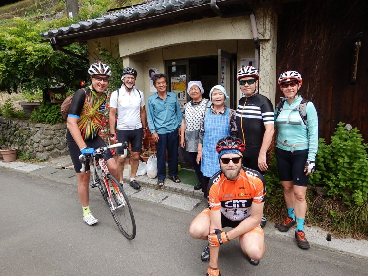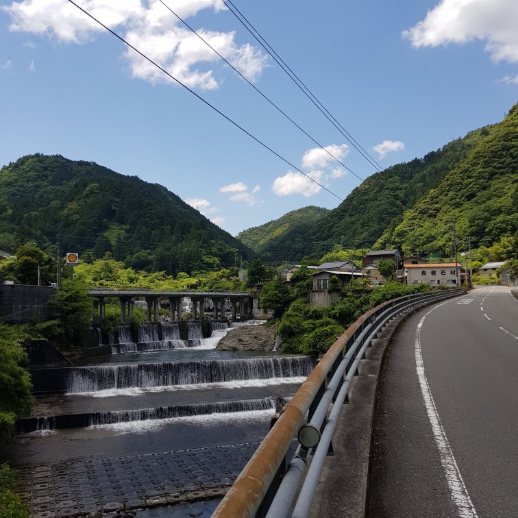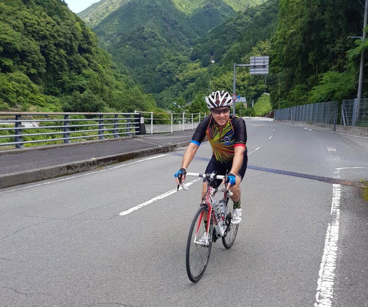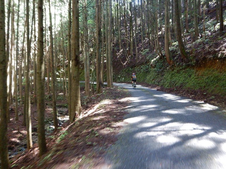 The ride this morning started with a really really lovely climb, steady at 3-4% gradient so not too taxing, on a quiet windy moss- covered road following the Shimanto River. It was quite shady so luckily the sun was out and it promised to be a warm day. We were riding in a group with the leader setting a steady sustainable pace and swapping off turns after 5 min or more. Then we gradually split into smaller groups and individuals based on our speed.