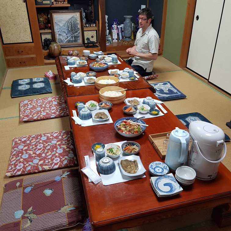 Dinner was fantastic here. Quality home cooked food. Karaage chicken on a shared plate with sauce, potatoes baked with mayo and cheese, spaghetti with peas, crumbed fish. I even sat up with the boys for a post dinner whiskey and chatting. Bed is on a futon on the tatami mat floor.