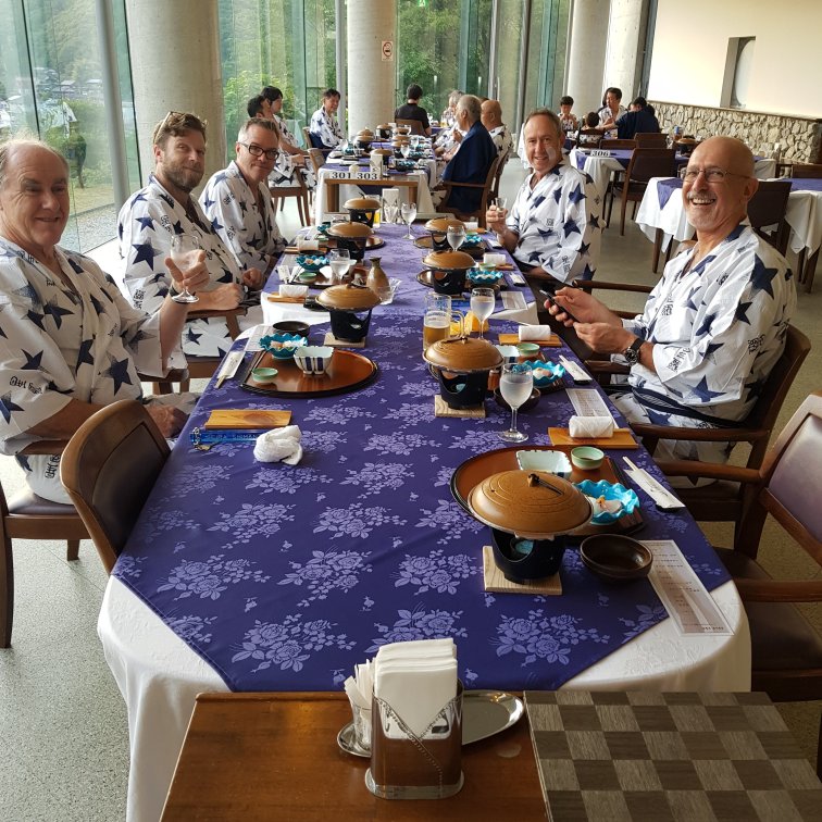With dry hair I was now ready for pre-dinner drinks. I do love the tradition of wearing a yakata after bathing, including in public to the hotel restaurant. Some of the boys just need to learn to not flash so much leg or chest!