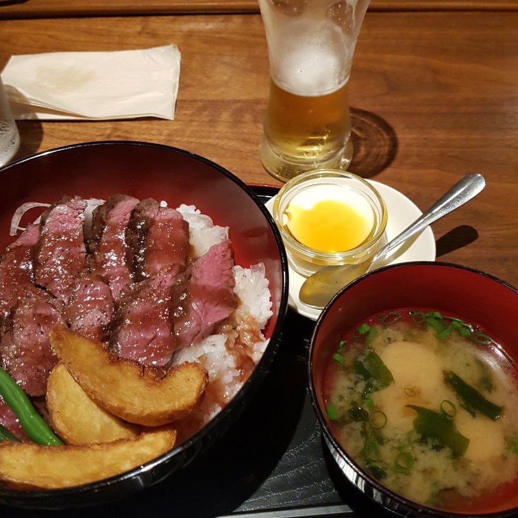 We went to the covered market but didn’t see many food options. Lots of places were closed. We found a drink bar and Rob asked the owner where we could find food and she pointed out a place just a bit further up. We went in and had the best lunch ever! Rice with the tenderest tasty beef, green beans, miso soup and a mini creme caramel. All that plus a beer was only ¥1,000 which is around $12.