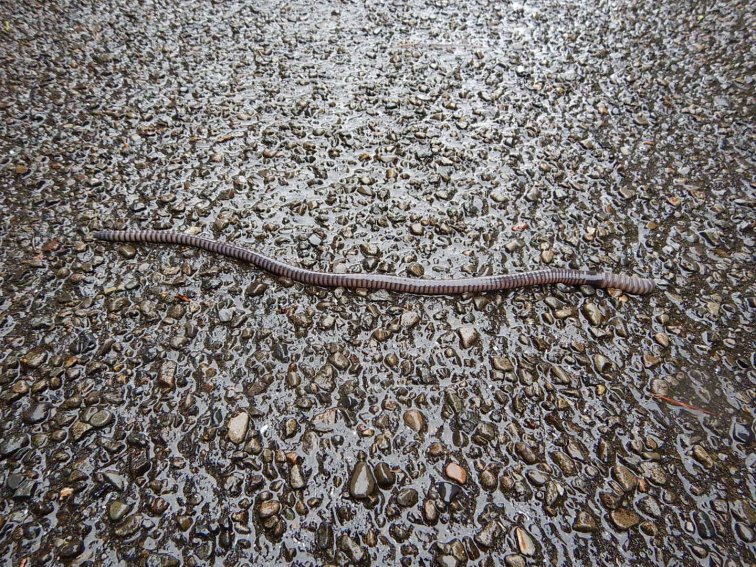 My mood brightens up a bit when I have a toilet stop, then see some giant purple worms on the road, a land crab and some wild strawberries, then get to do a nice climb at my pace with no following anyone.