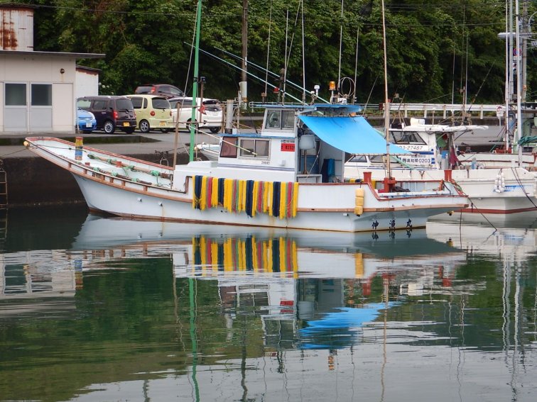 The rest of the day is pretty flat and only 50km in total. We are working in a group on one of the bigger roads which is an effort for me to keep up and I am not interested in pushing out of my comfort zone to keep with the group. There was a possible lunch option but it was closed so we push on through a bit of drizzle, via a levy bank road and some water wheels, into Shimanto City.