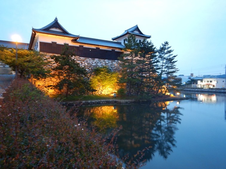 Imebari castle was quite impressive with a huge moat and the lights went on as the sun went down. We spent ages exploring and taking photos.