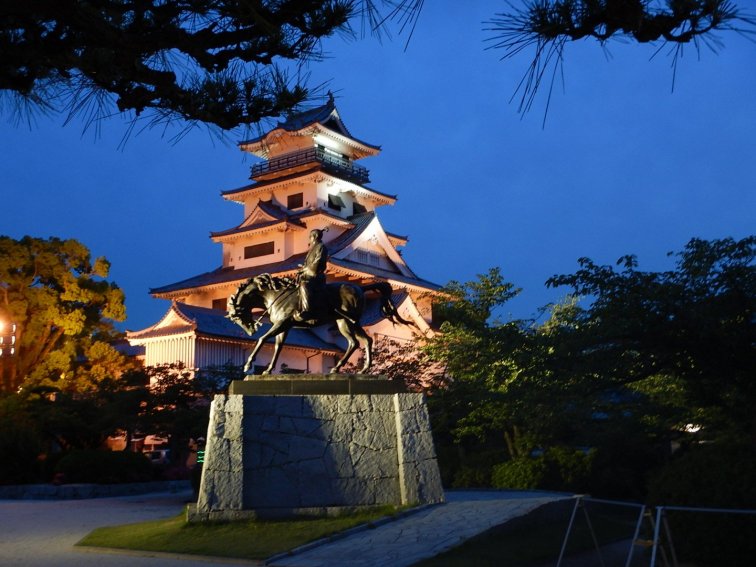 Our accommodation was a typical Japanese hotel. I put on a load of washing with Rob then had a shower in my room. After the washing finally finished I quickly hung mine out then met up with the rest of the guys to head out for dinner. We were left to our own devices this evening which was fun. We sussed out a possible dinner option on the top floor of a boat shaped building on the harbour, then headed to the castle to check it out in the soft dusk light.