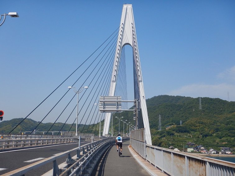 Our ride today was on the Shimanami Kaido, a 70km long cycleway network of bridges and roads linking islands between Imebari and Onomichi. We were all excited about this ride, and the bridges were fantastic. It was just a shame about the smog that made it so hard to get good photos! We’d also been assured by John Morrell that we couldn’t get lost and we just had to follow the signs. While that was true, some of the signs gave absolutely no warning of which direction to turn and quite often it was the opposite way to what the car signs said. Anyway we did all make it without getting lost but we had to have our wits about us.