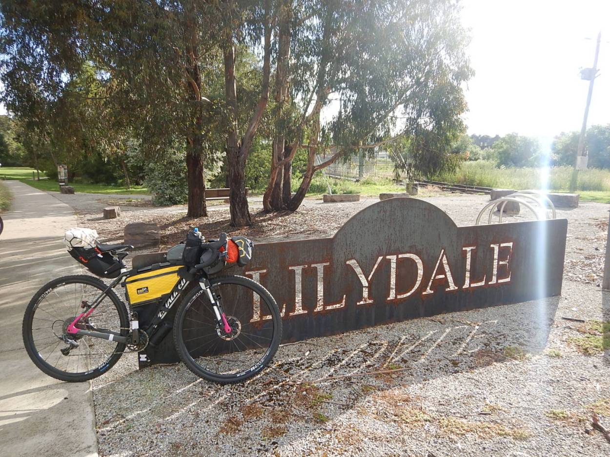 We finally got to the train to Lilydale at 5pm, which was at least an hour behind my moody pessimistic schedule – and had to stand up with our bikes for most of the way.
