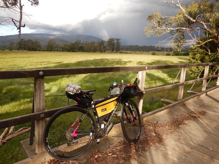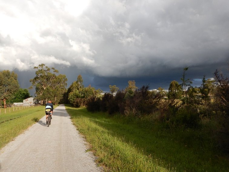 Then about an hour into the 40km ride we notice the intense black clouds and rain that we are riding towards, as well as diminishing light. I’m spite of our hopes that the rain would skirt around us, we did get a few showers – and arrived at Warburton just as it was getting proper dark at 8: 15pm.