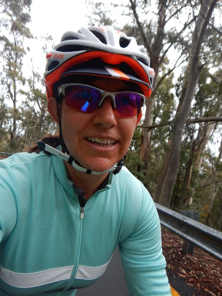 The worst section of the first half was probably about 3km from the top. It was steep, consistently steep, and unrelenting. I was thinking that if I stopped I’d never get started again. I was thinking that I’d be slower if I walked and I’d get sore calves. I was thinking that I was a lean, mean cycling machine and this was what I’d trained for. I kept going. Then I saw the sign that it was 2km to the rest point, and the gradient may have relented a little.