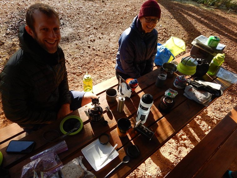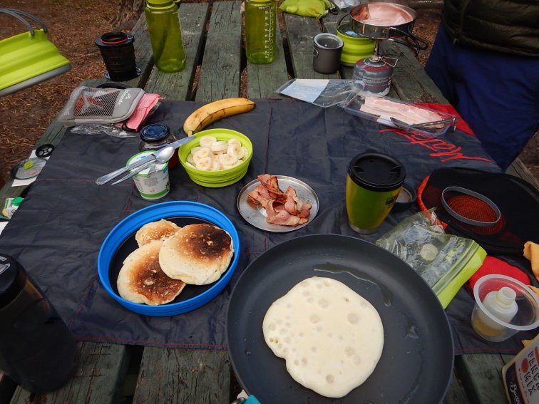 Good thing today was a short easy day, as the king of faff was back! Admittedly we did have an indulgent breakfast of pancakes with bacon, banana, syrup and coconut yoghurt and used pretty much all of our dishes. But the rest of us managed to get packed up and ready by about 9am. Then we had a nice chat about all kinds of things while we waited an hour for Greg to gather every single item of gear and get it packed.