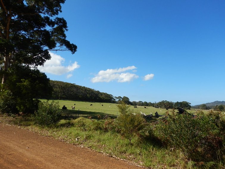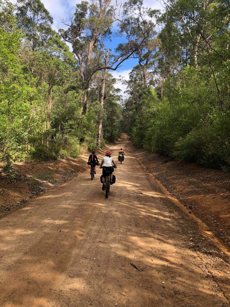 After the water stop, we retraced our wheel tracks from the previous day to return to where we had deviated from the Munda Biddi. Then it was onto an unsealed corrugated road! After a few more unsealed and sealed roads, and a section of horse track through paddocks, we got onto a really fun shared singletrack trail through the bush, parallel to Lower Denmark Rd. You would never know it is there but it was a few kilometres long and lovely. We then passed through the tiny town of Elleker and onto Old School Rd (what a great name!). We then had an extended stretch on the bitumen on Lower Denmark Rd, which wasn’t that fun being amongst the traffic. It was great to turn off here and back into quiet roads through farmland.