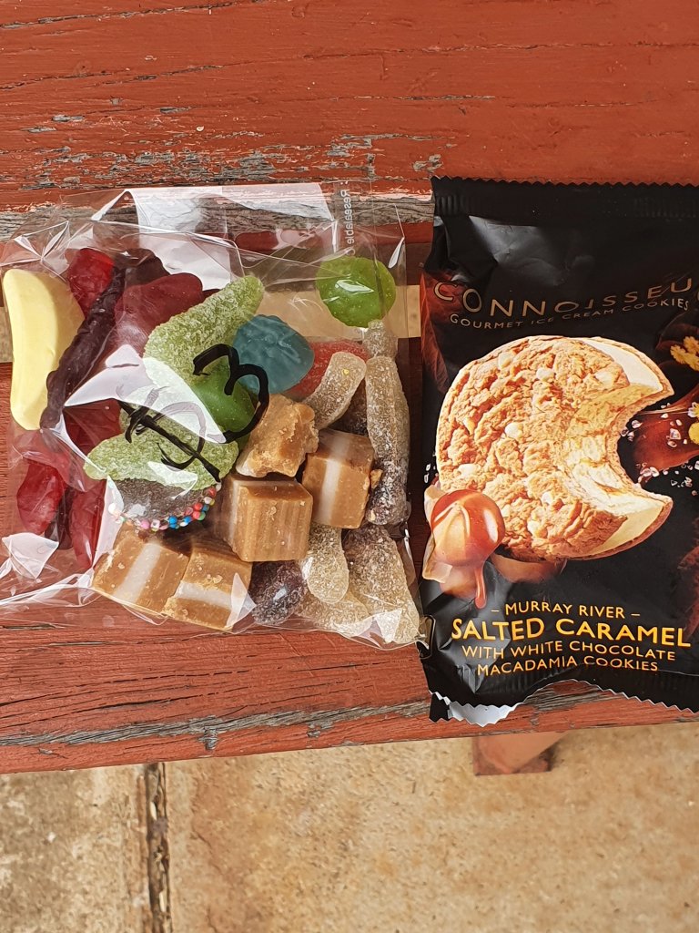 We passed through the hamlet of Pumphreys Bridge (nice riverside camp spot but apparently full of mosquitoes) and reached Popanyinning at 1:59 pm. This was excellent timing as the general store closed at 2 pm – I actually hadn’t been able to find the opening hours in advance and assumed it would be closed, so it was a great surprise and treat. Ice creams and a $3 bag of mixed lollies, it was the perfect pick-me-up. For future reference, normal opening hours are even later.