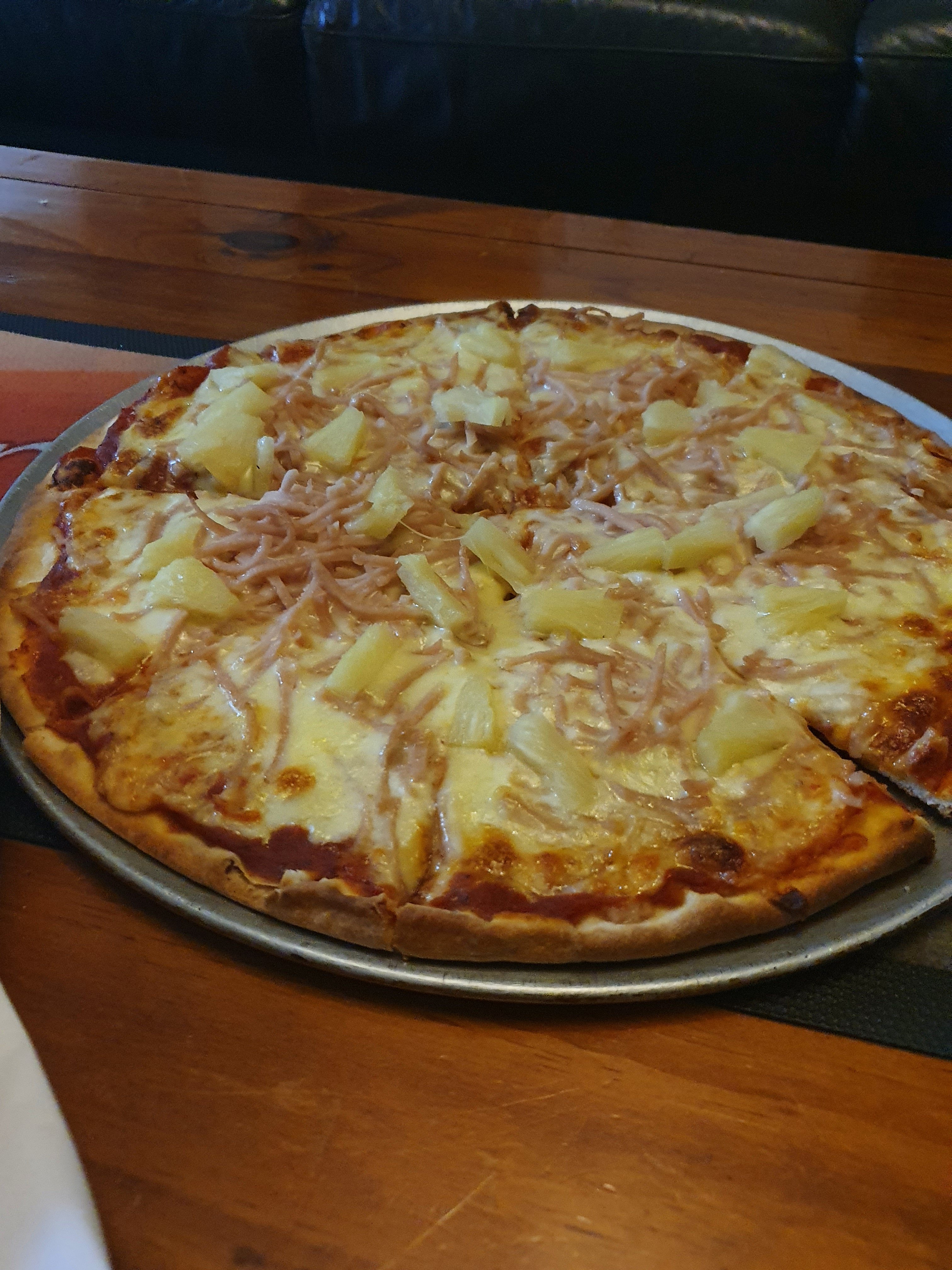 I hadn’t phoned ahead as I knew we were on track to arrive by 7:30 pm and the kitchen was open til 8 pm. We arrived and there was one guy sitting in the pub – he was the co-owner. Turns out they had been massively impacted by COVID and had to let their kitchen staff go, and haven’t found replacements. So now the kitchen isn’t staffed unless there are dinner bookings. They could make us pizza though, so we didn’t go hungry, and after they warmed to us they were very hospitable. We had to carry the bikes upstairs to the rooms, but had an ensuite which was nice. We also had the place to ourselves and it was a quirky pub with lots of old sports memorabilia. It was 10 pm by the time we got to bed after a relaxed dinner.