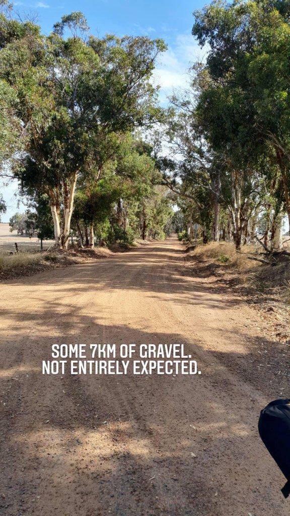 The next section included about 7 km of gravel road. Thankfully it was relatively good condition so it didn’t slow us down much. I hadn’t been able to find any way from Qualeup to the north that didn’t include gravel. I will do a modified version of the route that bypasses Qualeup and the gravel, as it wasn’t much of a town!