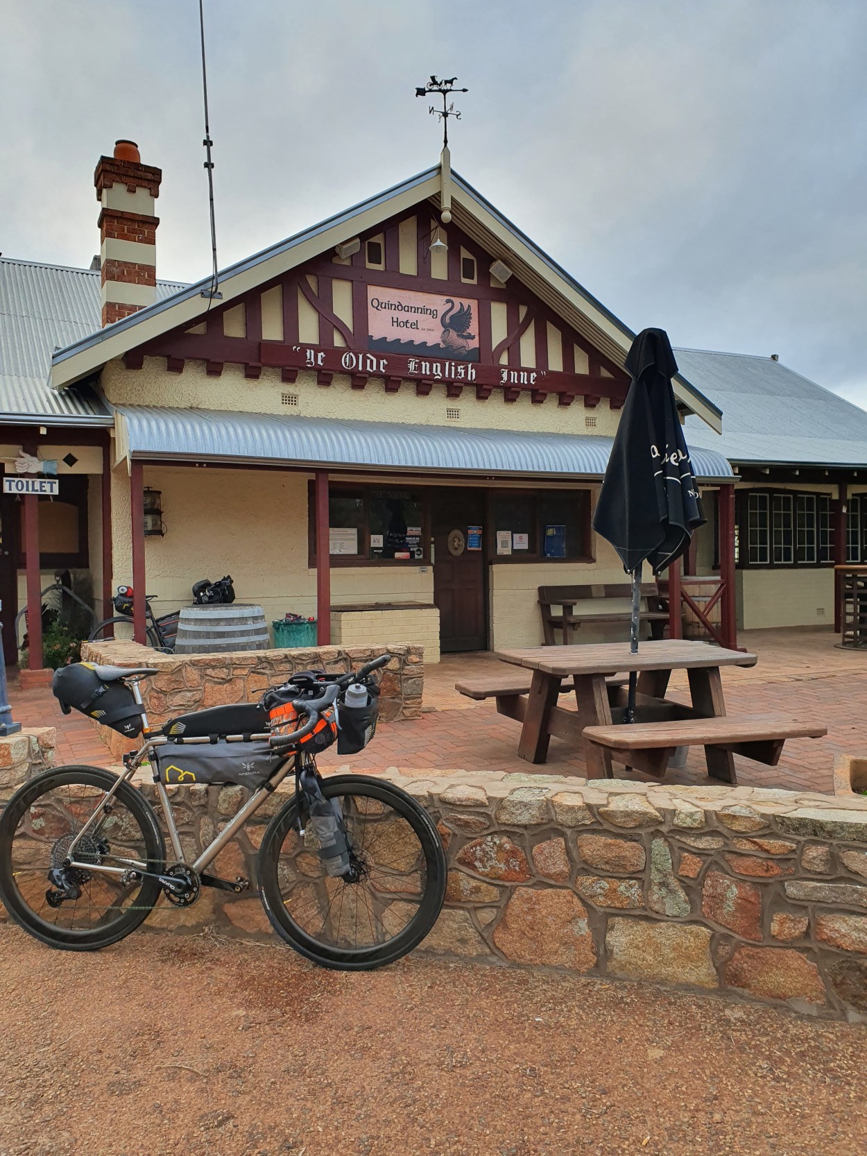 Nevertheless, we averaged 30 kph for the last hour and reached Quindanning Hotel at 8 pm, 30 min before food orders closed. The staff were lovely, we checked into our small room (single storey = ground floor), had a quick shower in the shared facilities, grabbed a drink and a table just as our meal was ready. I had a pint of lemon squash and a solid pub meal of steak, mash and veg. We were so tired, straight into bed after dinner, by which time it was 9:30 pm.