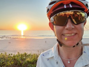 In the tradition of ultra-endurance race events, the RideWA route started at the ocean. On Sunday, we rode from our hotel through suburban Broome to Cable Beach, arriving in perfect time for the sunset. We were very happy to be on bikes, as the car park was chockers! After many snaps of the bikes and beach, we paused to enjoy the sunset then rode the first 5km of the RideWA route, before heading back to the hotel for dinner.