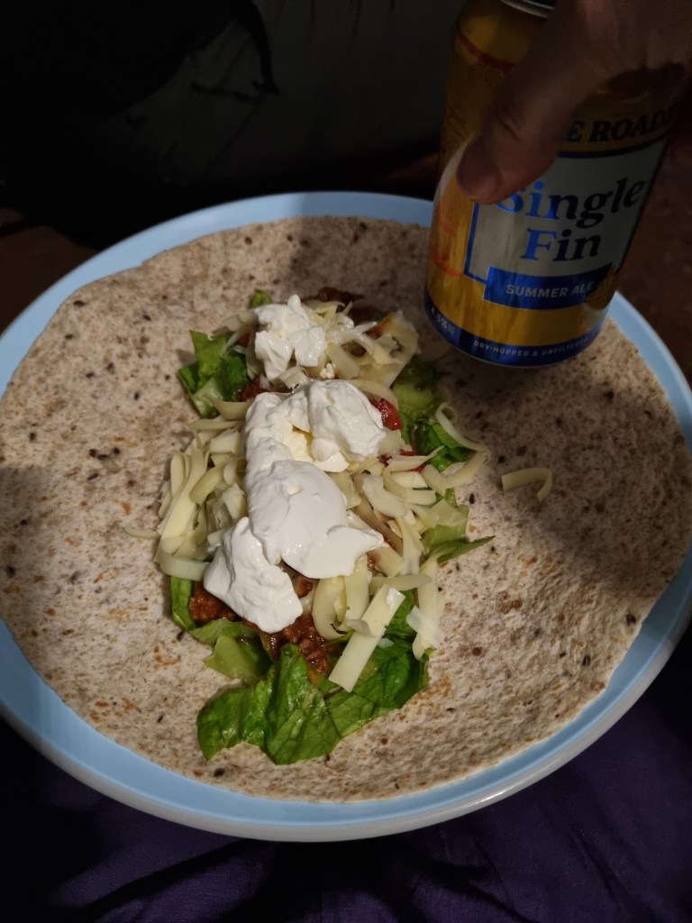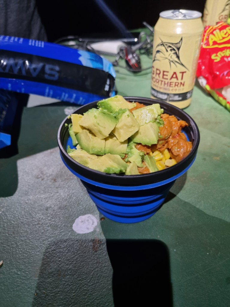 As we were enjoying the sunset, a family came down to the water and we got talking. They were really lovely and very interested in our trip, as the husband had done quite a lot of bike touring in Europe with the wife supporting. They invited us to their caravan for a home-cooked dinner, which we were happy to accept. We contributed an avocado, and enjoyed bolognaise sauce and salad in wraps, plus a beer. And great conversation!