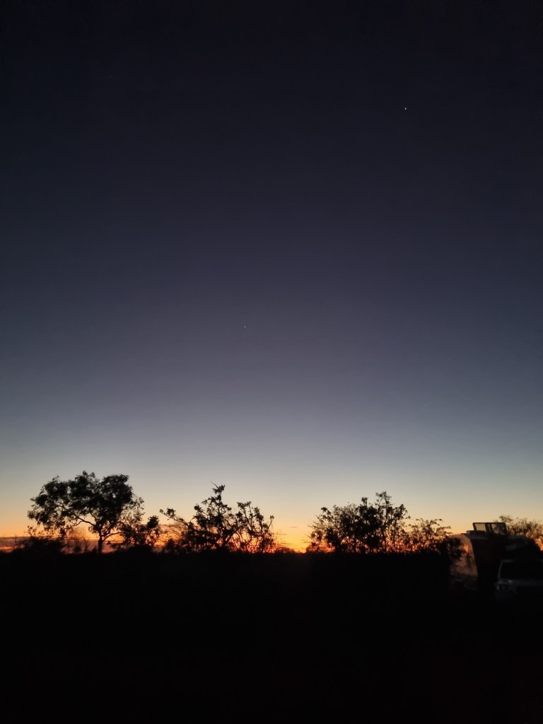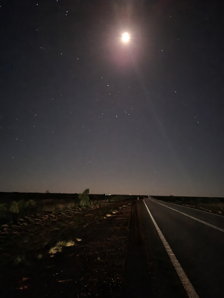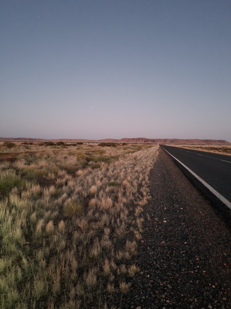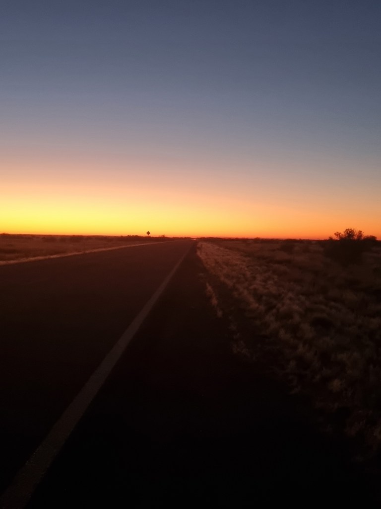 We attempted to nap through the afternoon. I got some shuteye but overall less than two hours. After icy poles we set off again around 5pm. The heat had started to dissipate, and traffic was negligible throughout the evening. It felt like about one road train per hour.