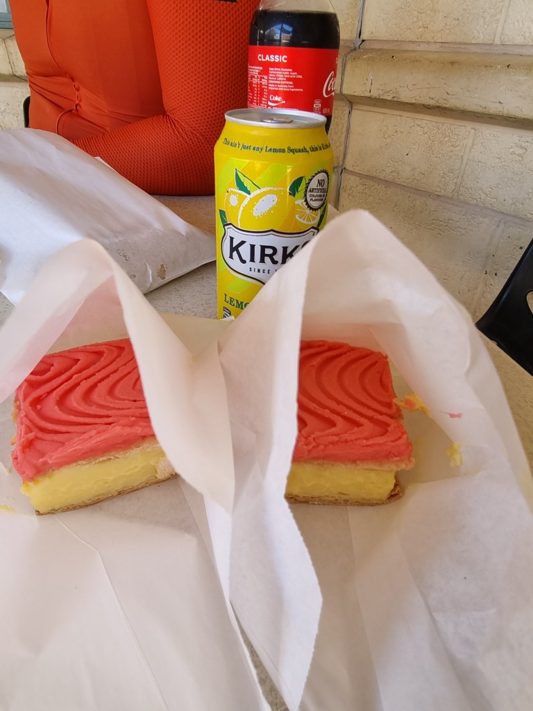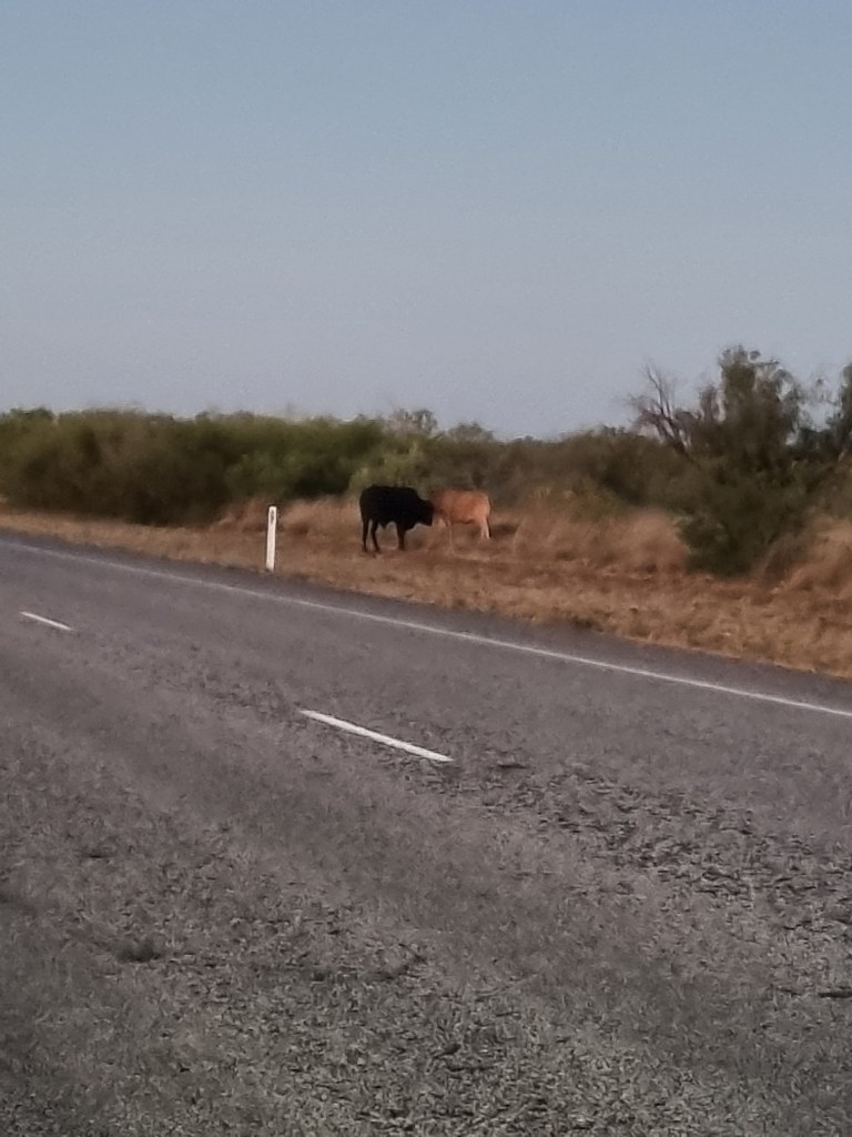 Breakfast at the rest area consisted of cold brew coffee (a coffee bag, steeped in cold water overnight), muesli, half a banana and half a 200mL UHT milk. We set off in the pre-dawn twilight, before any of the caravaners at the rest area had stirred. This meant a head start on the heat, traffic, and the many kilometres we had to travel today.