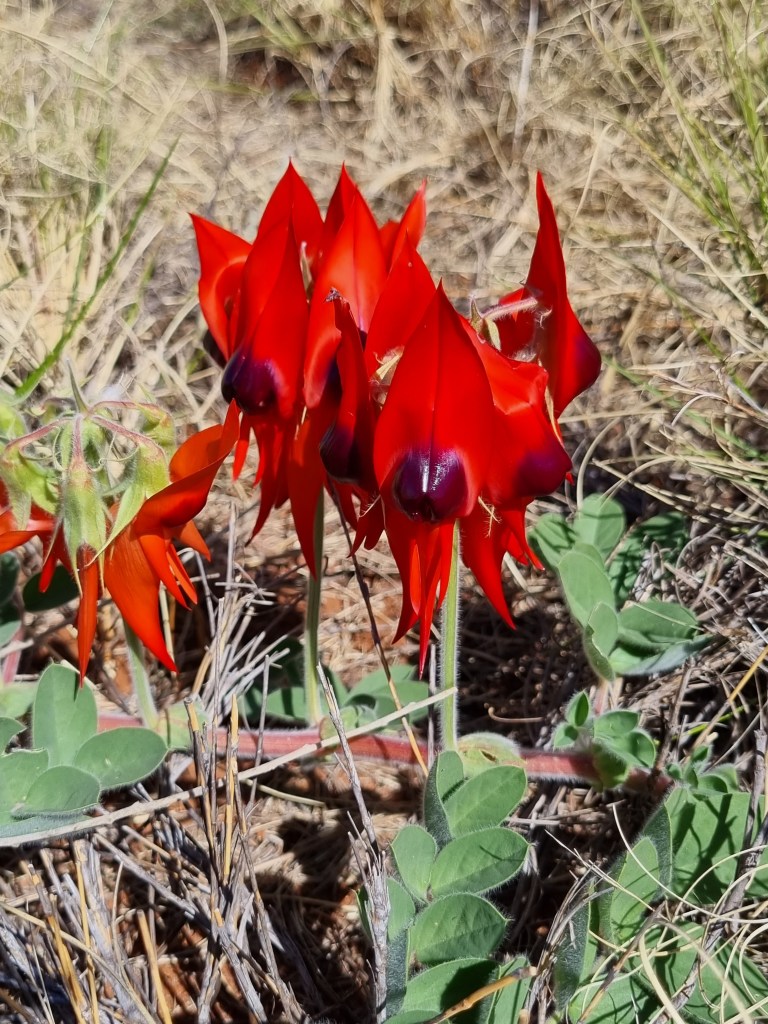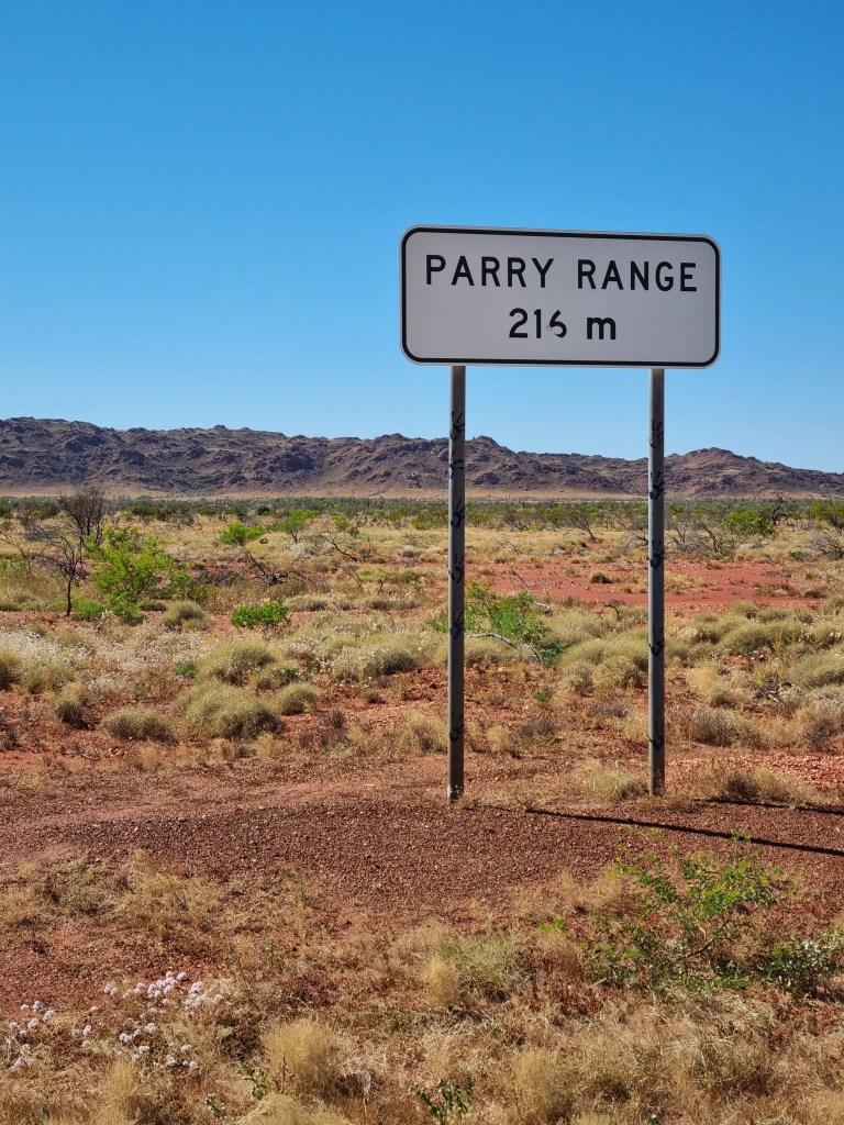 We saw our first hills for the trip, although the road skirted around them so we still had practically no elevation gain. We also saw our first water body (De Grey River) and first trees. Then coming towards Port Hedland we saw Sturt’s Desert Peas – I was very excited, and walked through the roadside grass on the busy highway to get some photos. Little did I know we would continue seeing them throughout the Pilbara and Gascoyne.