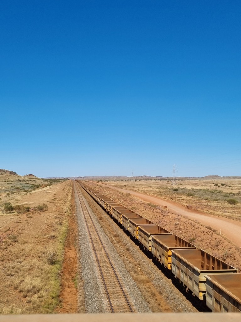 But back on the road to Port Hedland – we passed the road to Marble Bar, which is where many of the iron ore mines are located. We knew we would have quad iron ore road trains along this 40km stretch of the route, but actually there were not too many, they gave us plenty of space and we didn’t get buffeted by wind. We only had to duck off the road once or twice when there was traffic coming both directions.