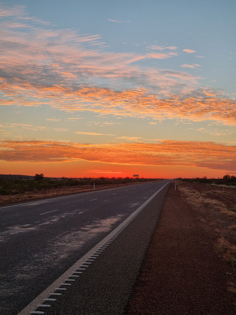 Riding through the colours of sunrise is always beautiful, especially out here with the wide open horizons and red dirt that lights up in the suns rays.