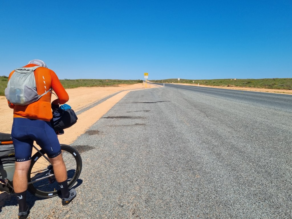 We had arranged for Greg’s uncle (owner of Port Smith Lagoon caravan park) to drop water for us at the highway end of his 20km long access road. We reached there around lunchtime after 145km, and the icy cold water was a treat. This was my biggest water consumption day – I went through 5.5L. I was carrying 5.5L but we wouldn’t reach our next water resupply until the middle of tomorrow, so the water top-up was essential!